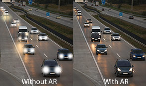 Instead of light bouncing off your lenses, it can pass through and enter the eyes, giving you sharper, clearer vision. AR coating can be applied to the front and back surfaces of your lenses to help protect them from scratches, smudges, dust and damaging UV rays. It prevents the “halos” you might see from street lamps or headlights when driving at night.