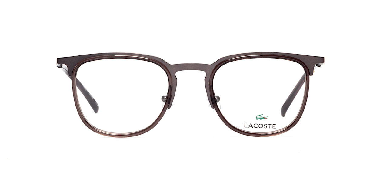 These grey designer eyeglasses from Lacoste are perfect for focusing at work or relaxing at home.