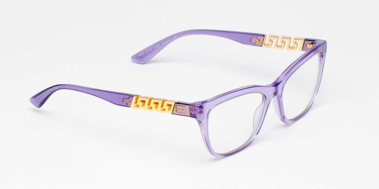 These purple designer eyeglasses from Versace are perfect for focusing at work or relaxing at home.
